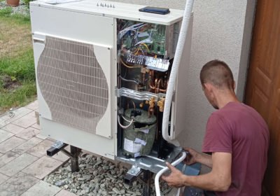 Przebudowaliśmy instalację grzewczą w wolnostojącym domu budynkuparterowy z poddaszem użytkowym, wybudowanym w 2015 r. w okolicach Zgierza (województwo Łódzkie). Powierzchnia ogrzewania około 150m2. Budynek ogrzewany był dotychczas przez kocioł na ekogroszek, a ciepłą wodę przygotowywała pompa ciepła marki Ariston. Klient przez 6 lat użytkowania powietrznej pompy ciepła do CWU przekonał się, że pompa ciepła jest bardzo ekonomicznym źródłem ciepła i postanowił wymienić także kocioł.
