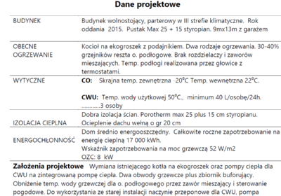 Jak widać z obliczeń roczne koszty ogrzewania uniwersalną pompą ciepła będą niższe niż dotychczasowym system z kotłem na ekogroszek Klient postanowił jednak, że zmniejszy roczne rachunki za ogrzewanie i prąd do 300 PLN. Prąd dla układu grzewczego i domowych potrzeb będzie pochodził z własnej instalacji fotowoltaicznej na dachu.